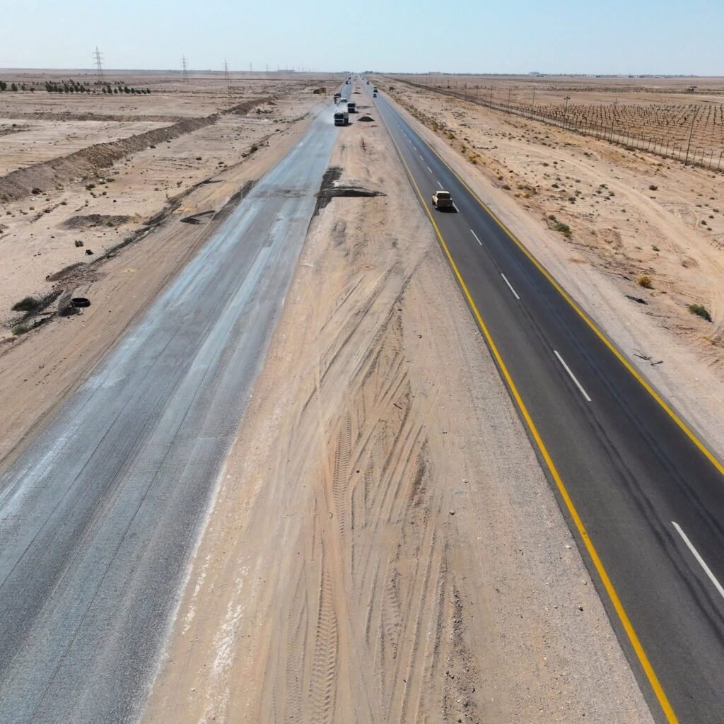 🟦 باشرت دائرة الطرق والجسور احدى تشكيلات وزارة الاعمار والإسكان والبلديات العامة، اعمال المرحلة الأولى من مشروع صيانة واكساء ممر الإياب لطريق كربلاء_رزازة_اخيضر/ ممر الإياب في محافظة كربلاء المقدسة بطول يبلغ 45كم وعرض الطريق8.25م.