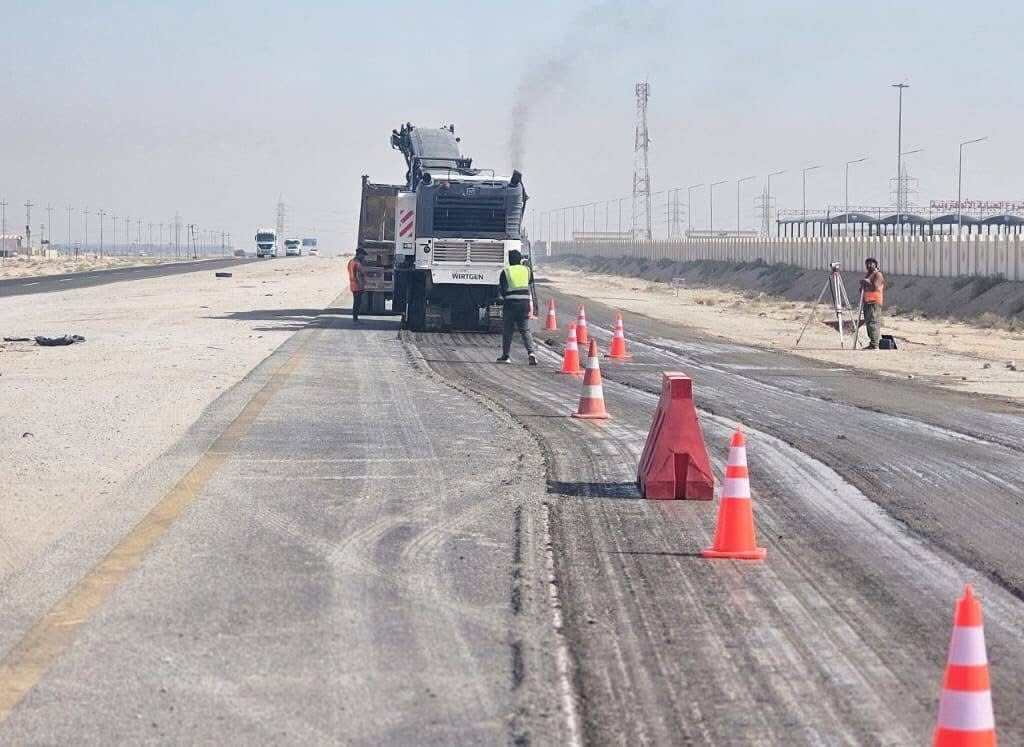 🟦 تمت المباشرة بقشط وازالة المناطق المتضررة من الإكساء الأسفلتي للطريق بطول اكثر من 20 كيلومتر، فيما تم تنفيذ مقطع تجريبي على جانب الطريق للتأكد من مدى دقة كفاءة الفارشة المستخدمة ومطابقتها للمواصفات الفنية المطلوبة حيث تخضع جميع المواد الأولية الداخلة في الخلطة الكونكريتة واعمال المشروع كافة للفحوصات المختبرية اللازمة.