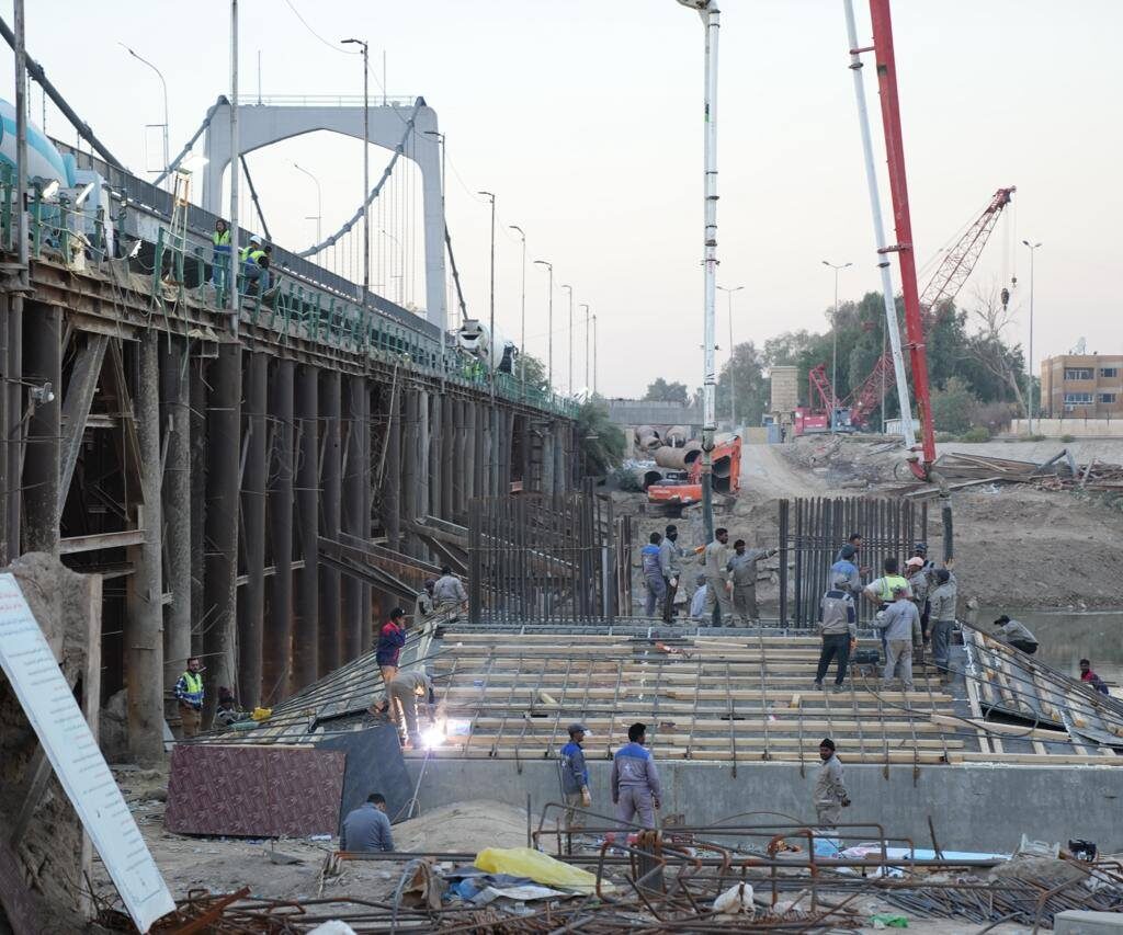 سبق وان تم انجاز جميع الاعمدة وتنصيب الروافد للفضاءات خارج حوض النهر ، فضلا عن رمبات الصعود والنزول، بالتزامن مع مواصلة اعمال حفر وصب الركائز النهرية حيث تم الانتهاء من صب 39 ركيزة من اصل 59 فيما تم صب جميع ركائز الجسر الثالث وصب قبعة الركائز على ضفاف نهر دجلة والعمل جاري بوتيرة متسارعة في صب الركائز النهرية للجسر الثاني.