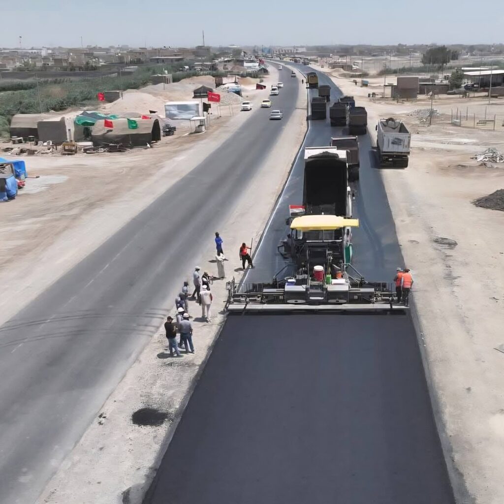 تم الانتهاء من اعمال فرش طبقات الاسفلت الثلاث (الأساس والرابطة والسطحية المبلمرة)، بطول 49كم والمباشرة باعمال التخطيط بالاصباغ الحرارية، مع إنجاز الاعمال الكونكريتية لجسر البسروكية، والحجام، والمصب العام، والمالح على الممر الجديد، والقناطر بانواعها ، فيما تستمر اعمال الجسور المتبقية (جسر المالح على الممر القديم، والغراف، والفجر).